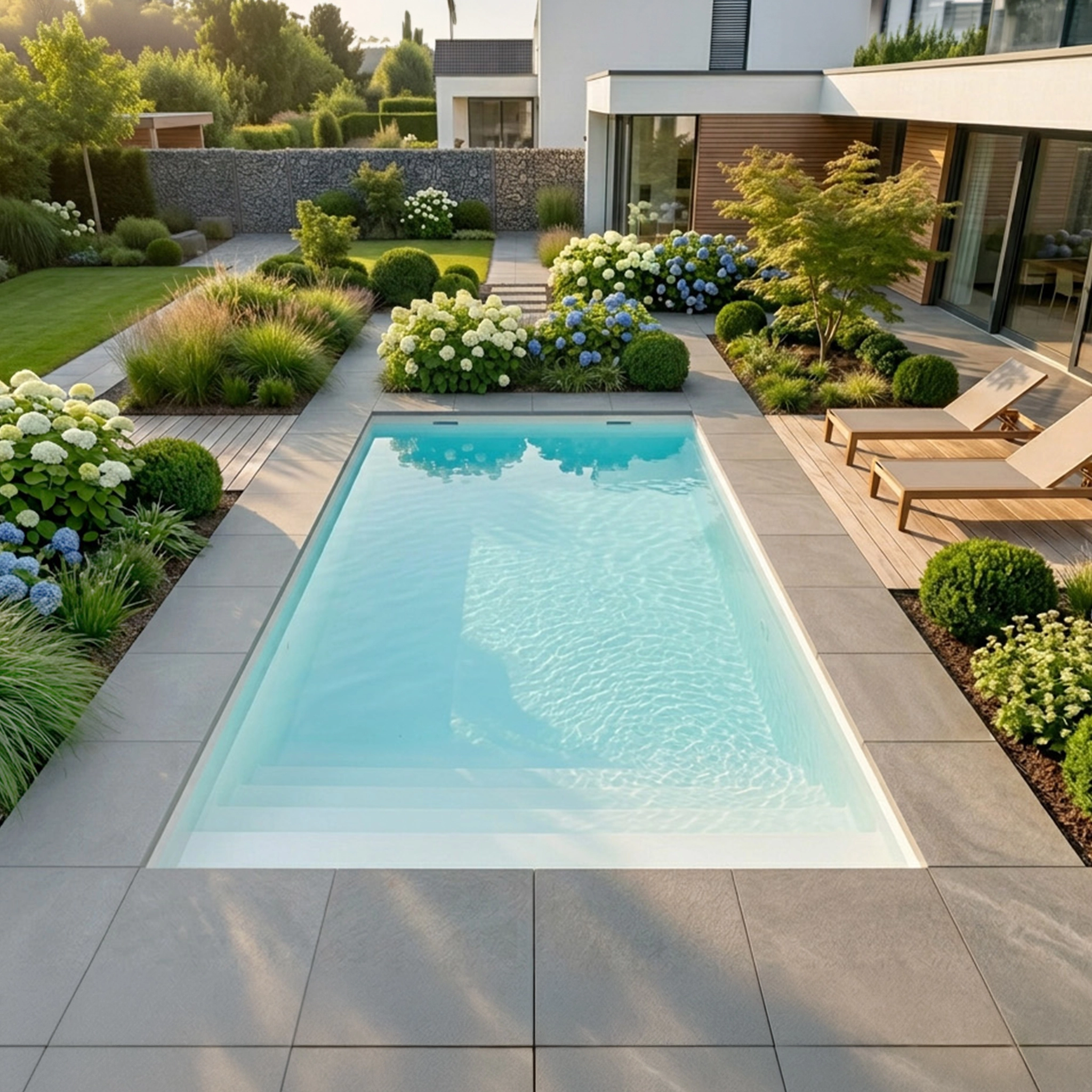 L'escalier permet non seulement un meilleur confort pour entrer et sortir de la piscine, mais offre également un design plus élégant et plus harmonieux pour votre extérieur.