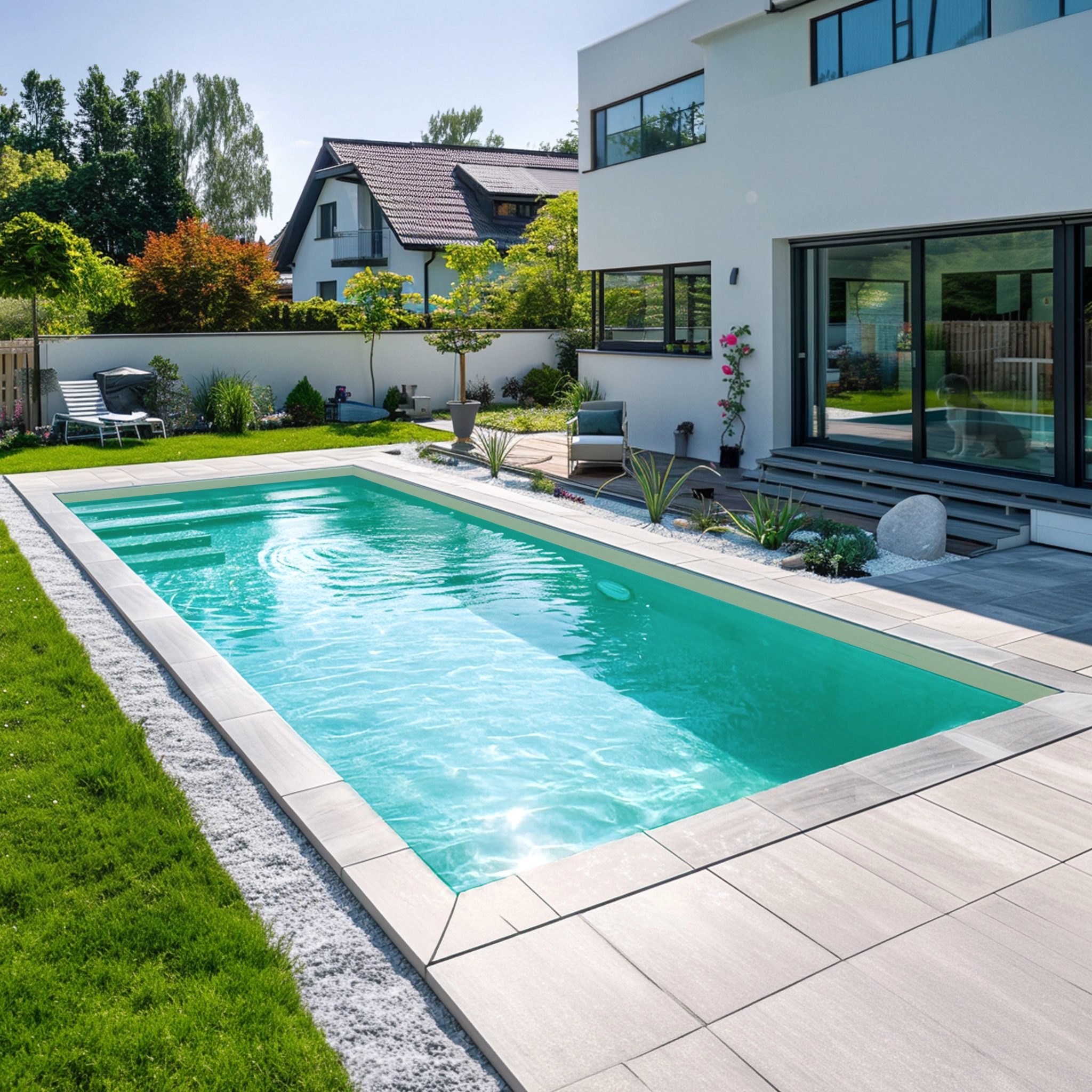 La piscine avec escalier (d'angle ou droit) est un modèle particulièrement populaire comparé aux modèles avec échelle plus traditionnels.