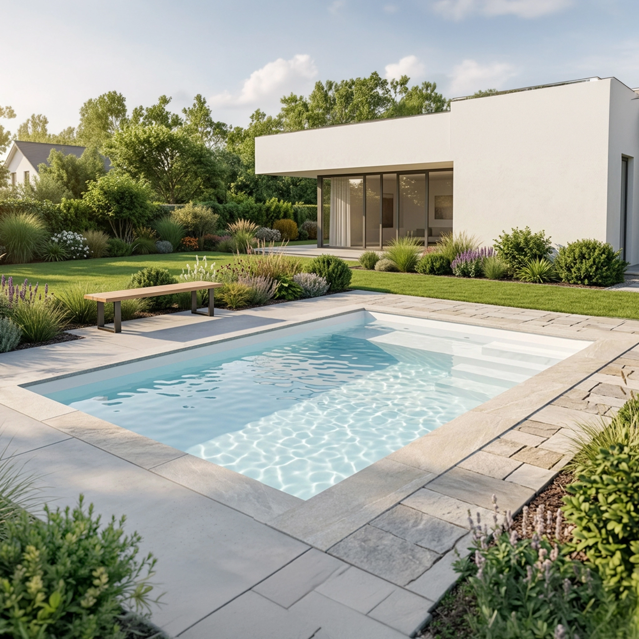 L'escalier permet non seulement un meilleur confort pour entrer et sortir de la piscine, mais offre également un design plus élégant et plus harmonieux pour votre extérieur.
