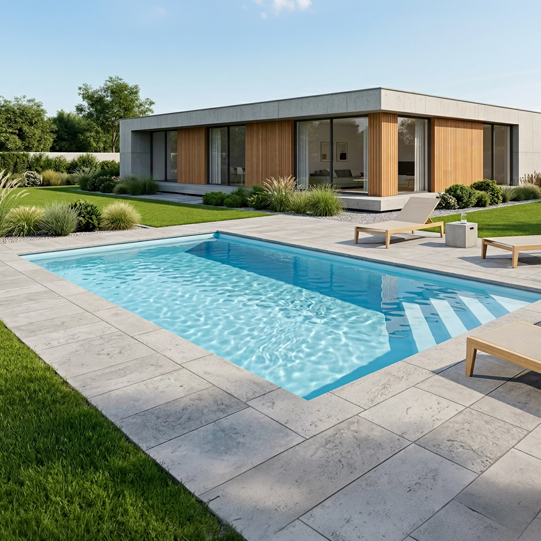 La piscine avec escalier (d'angle ou droit) est un modèle particulièrement populaire comparé aux modèles avec échelle plus traditionnels.