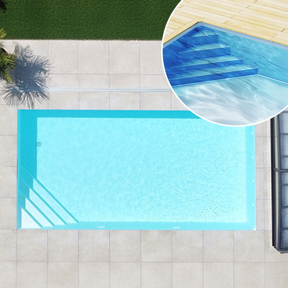 La piscine en kit polystyrène d’Apoolco est disponible en deux versions : un kit sur-mesure et un kit complet. Piscine Clic vous propose le kit complet pour un achat sans prise de tête :