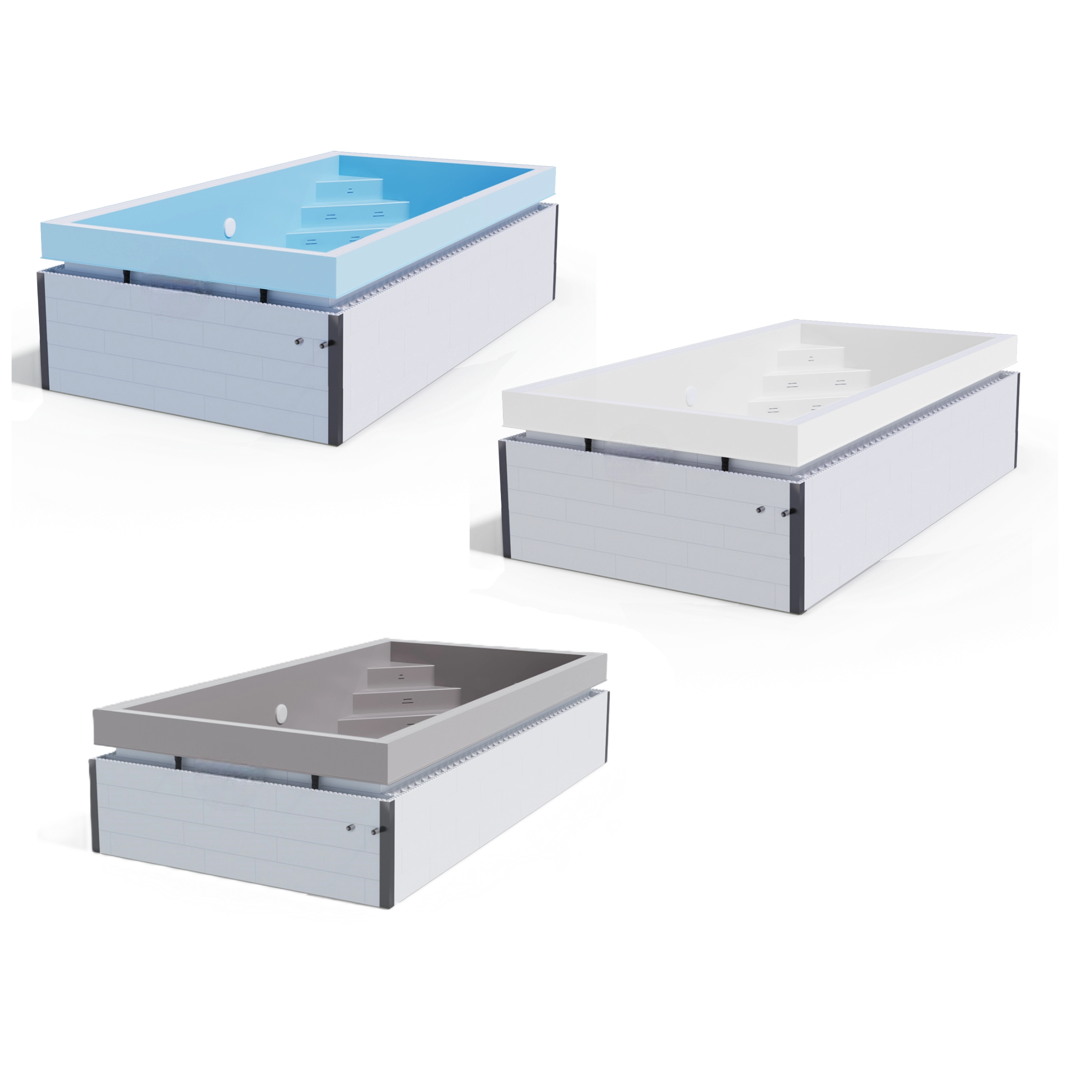 | Couleur de la piscine: | Blanc perle, Bleu aqua, Gris signal |