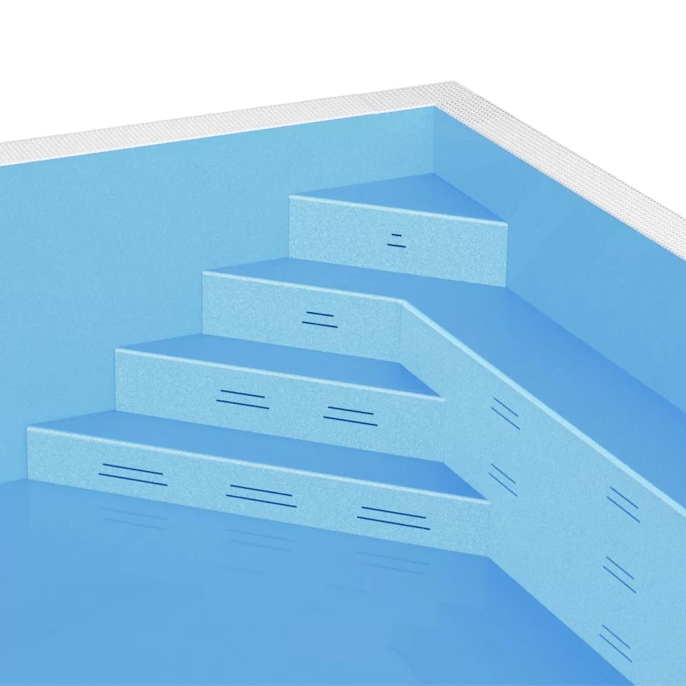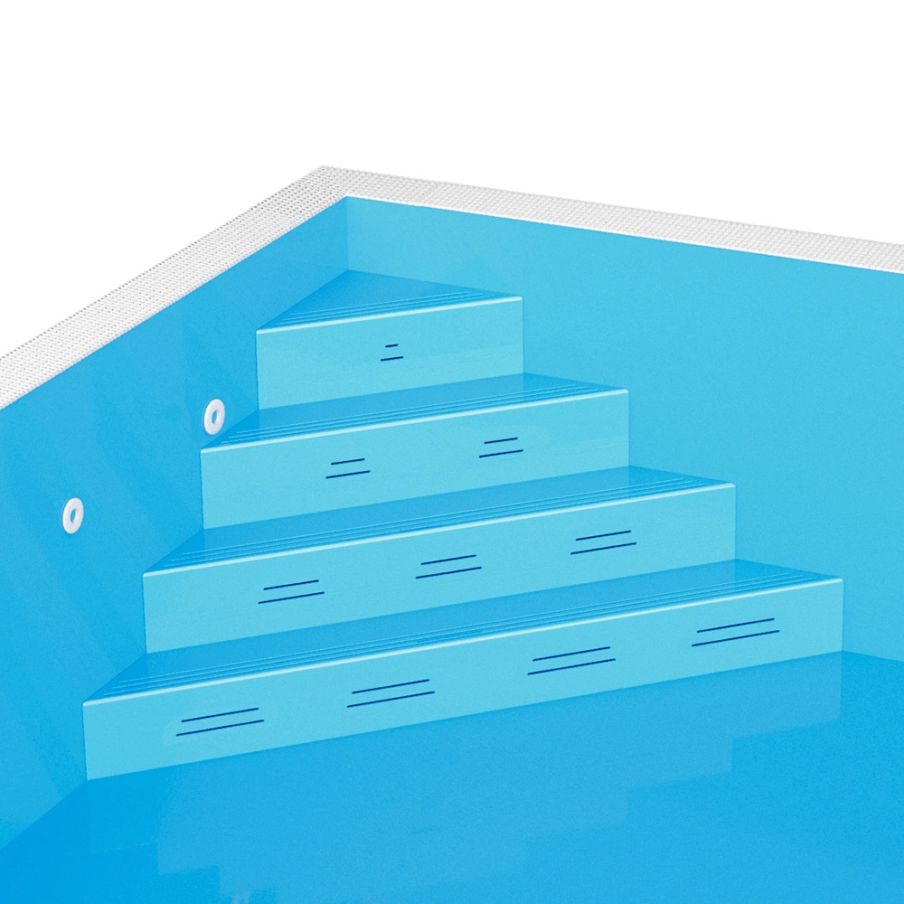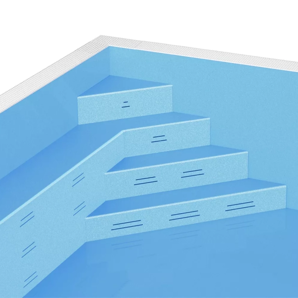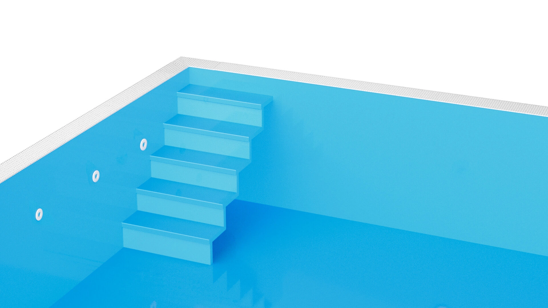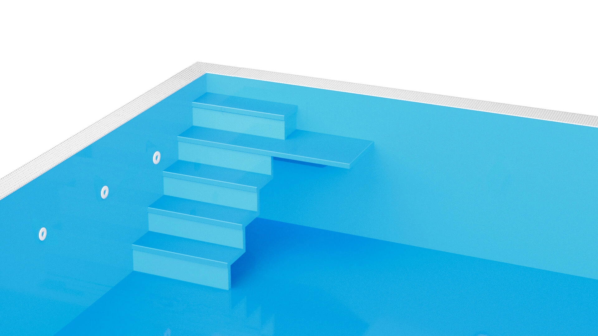 Ils peuvent être positionnés respectivement à gauche, à droite ou sur toute la largeur. Les escaliers X-AIR sont légèrement plus doux - idéal pour les enfants ou les personnes à mobilité réduite. Les X-AIR+ disposent en outre d'un banc de relaxation pour une pause détente dans l'eau. Sa conception unique permet une meilleure circulation de l'eau dans la piscine.