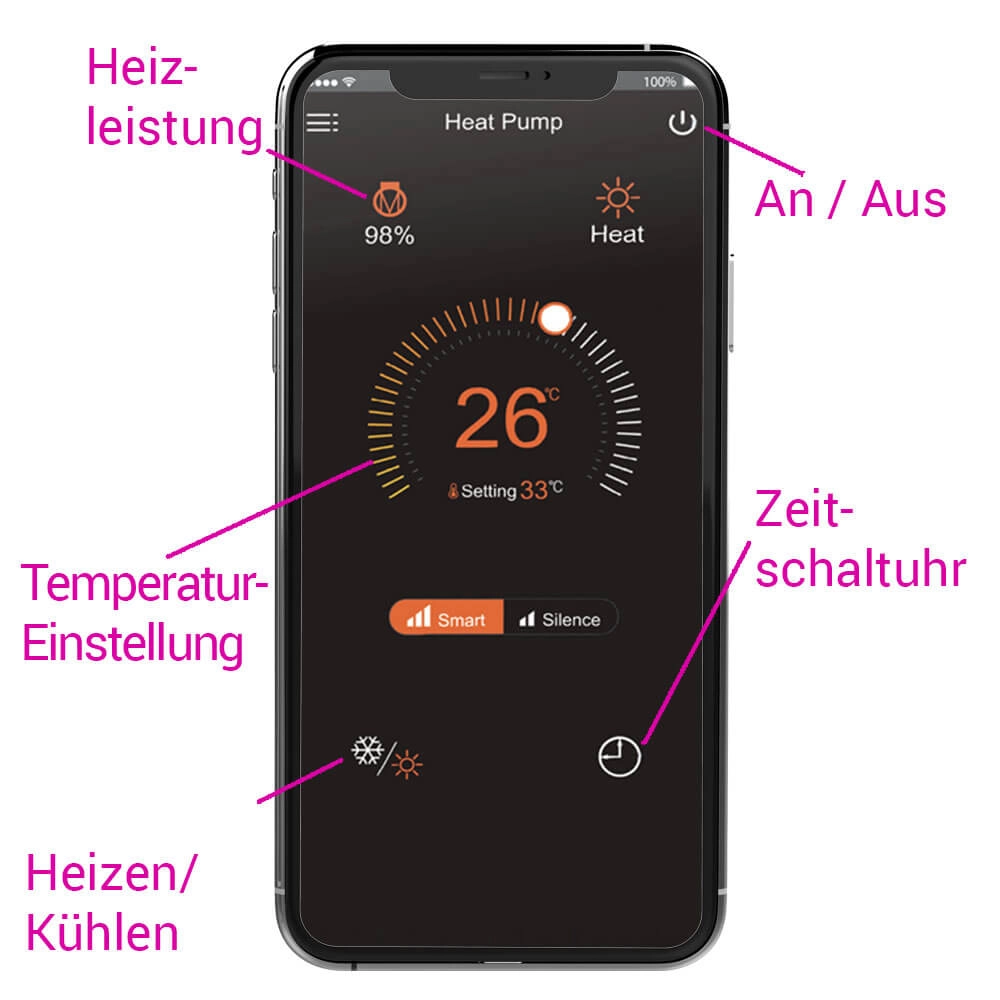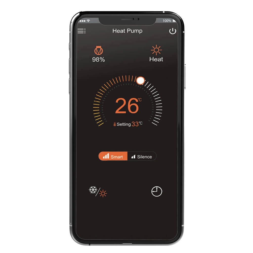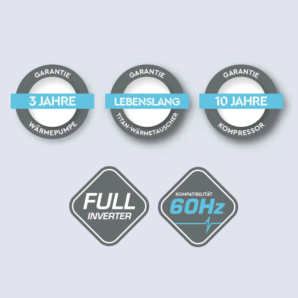 Grâce à la technologie inverter, le réchauffeur de piscine peut varier sa puissance entre 20% et 100% pour atteindre les réglages optimaux. Il mesure et régule automatiquement et assure ainsi la température souhaitée de la piscine. Alors qu'une pompe à chaleur classique marche/arrêt fonctionne toujours à pleine capacité.