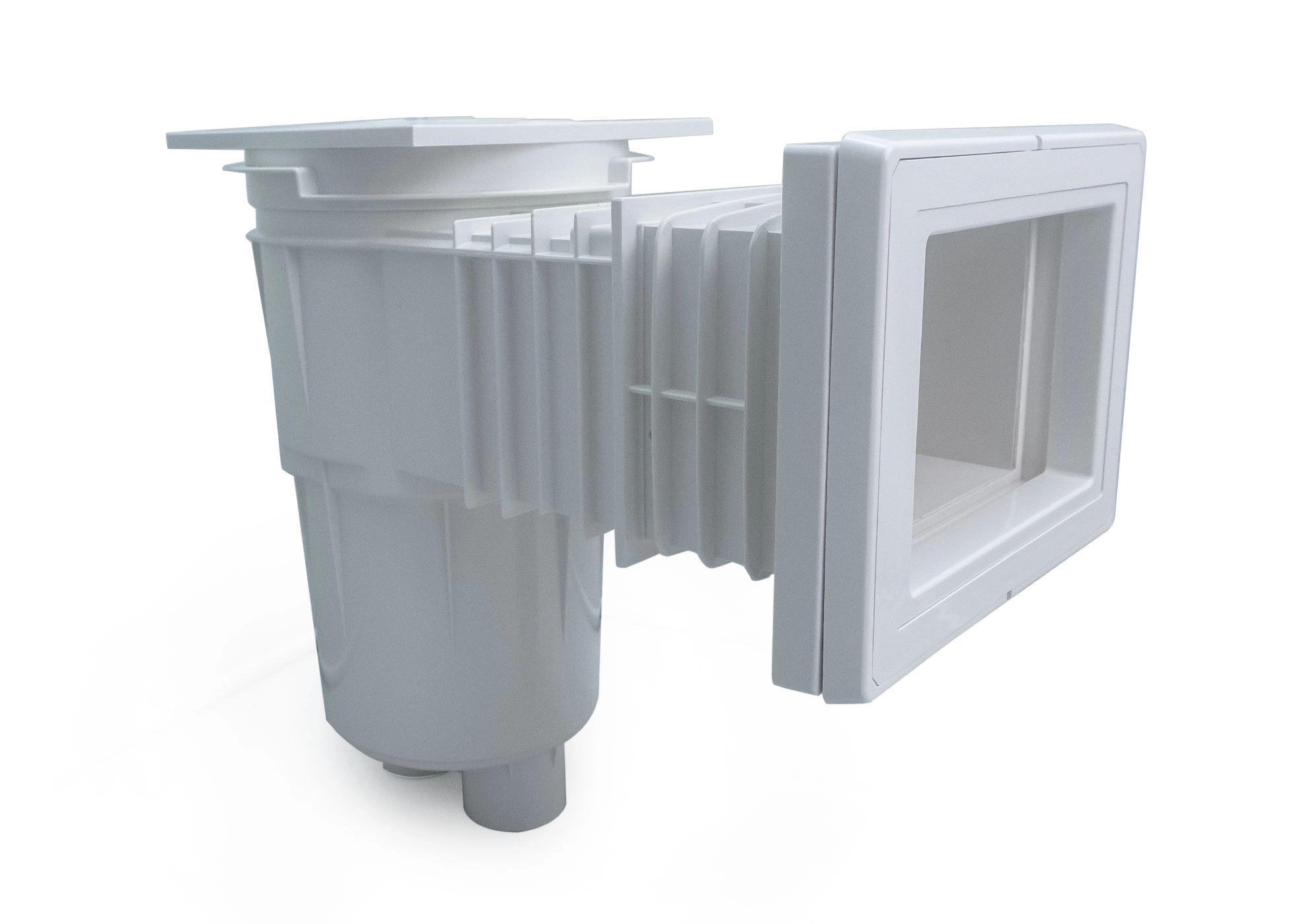 Skimmer encastré Astral Standard 2, pour piscines à liner et monobloc, raccordement 2" de la bonde de fond ou 6/4" au filtre, profondeur d'encastrement 510 mm, bride d'écumeur 296/228 mm.